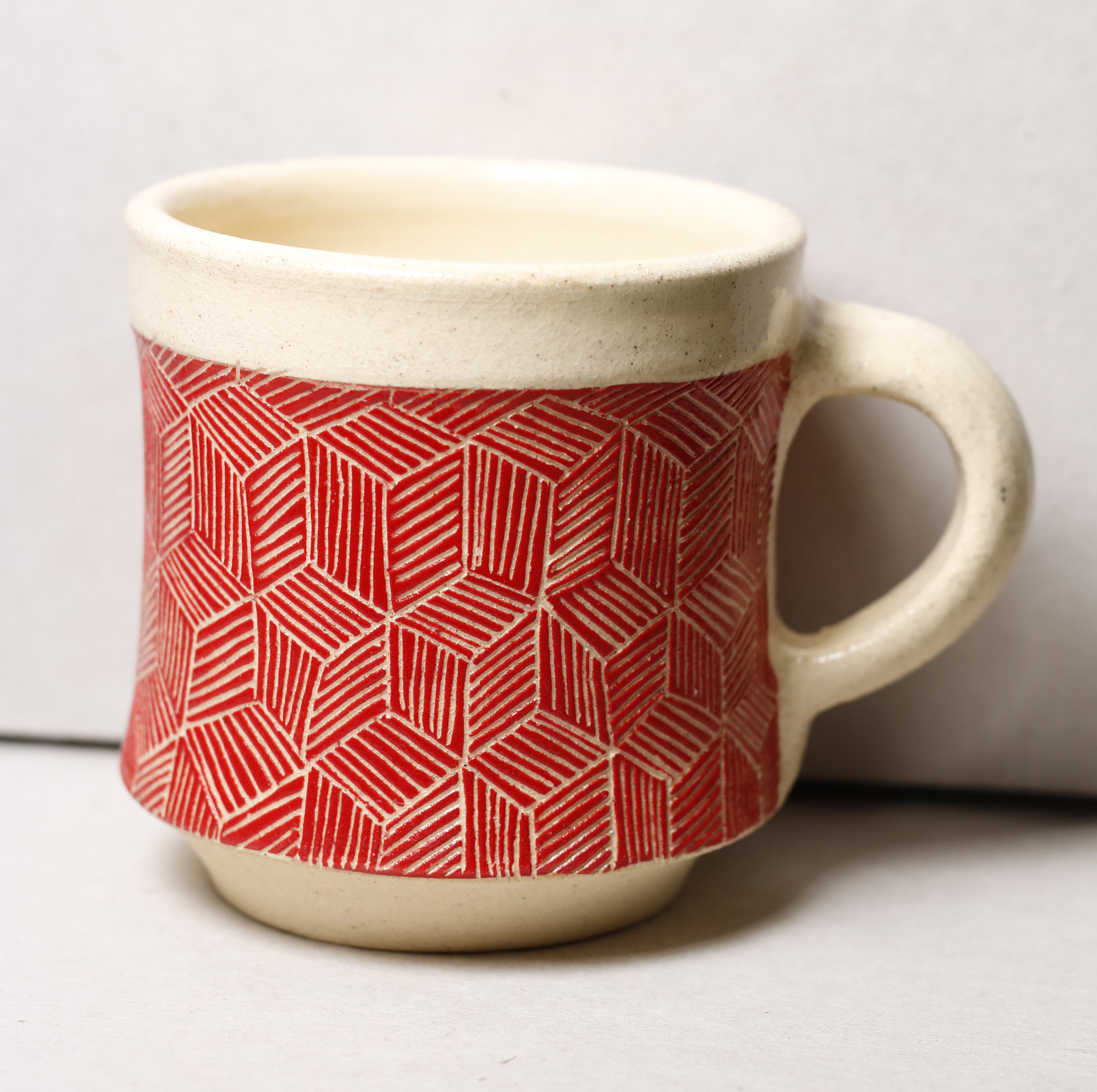 Ručně vyráběný keramický hrnek. Vyřezávaný geometrický vzor po celé ploše. 150ml