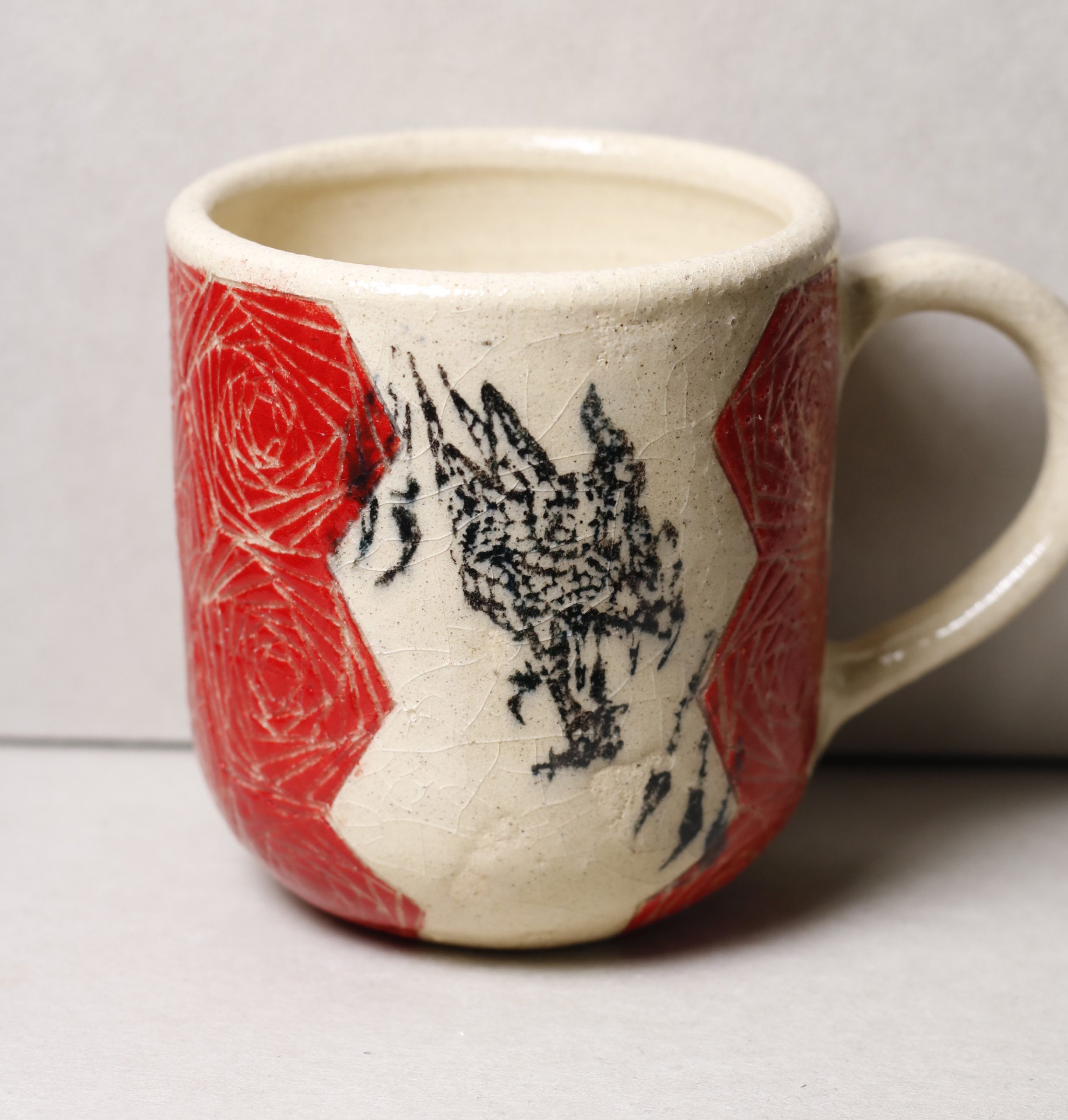 Ručně vyráběný keramický hrnek. Obrázek draka, vyřezávaný geometrický vzor. 200ml