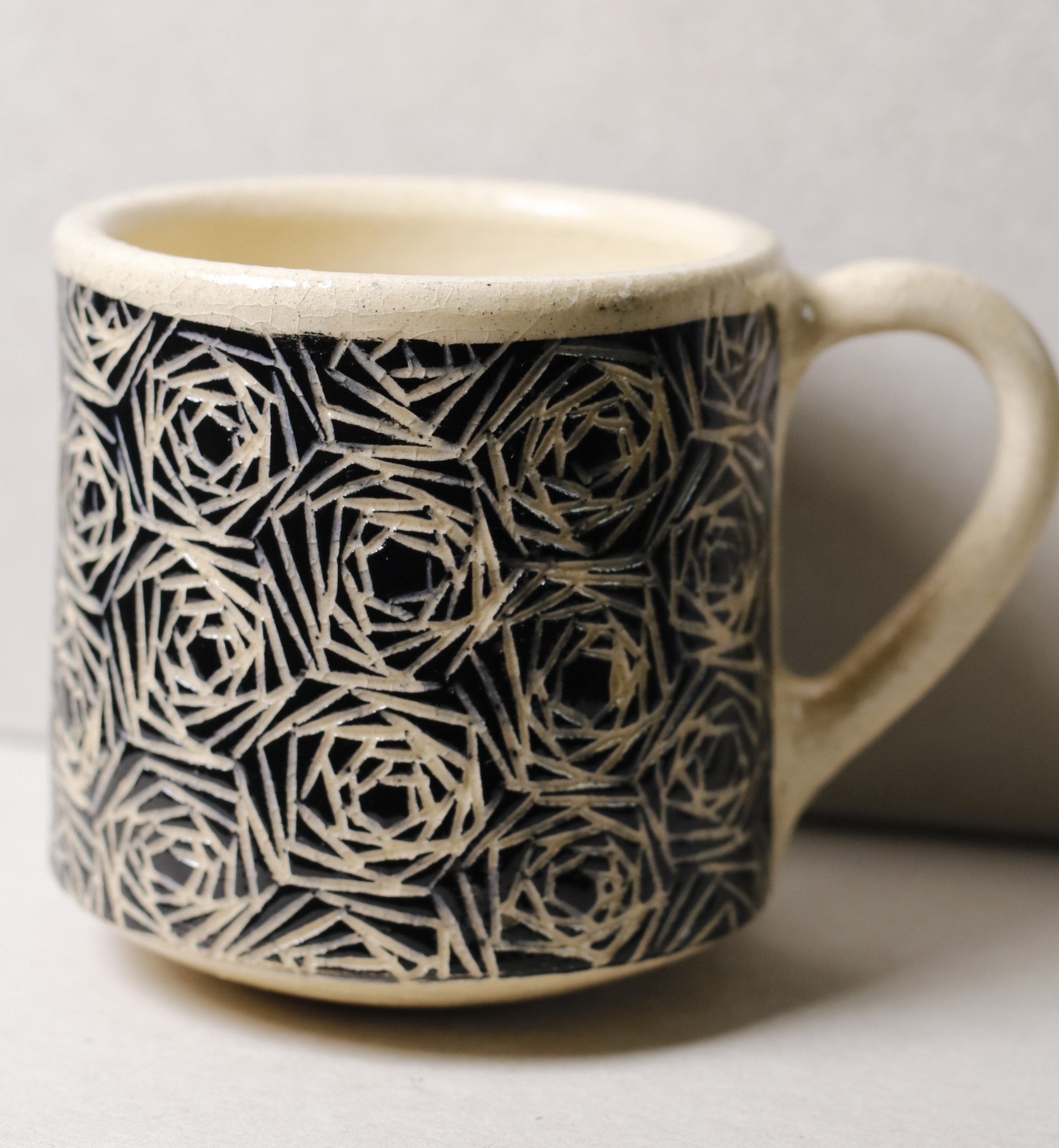 Ručně vyráběný keramický hrnek. Vyřezávaný geometrický vzor po celé ploše. 200ml