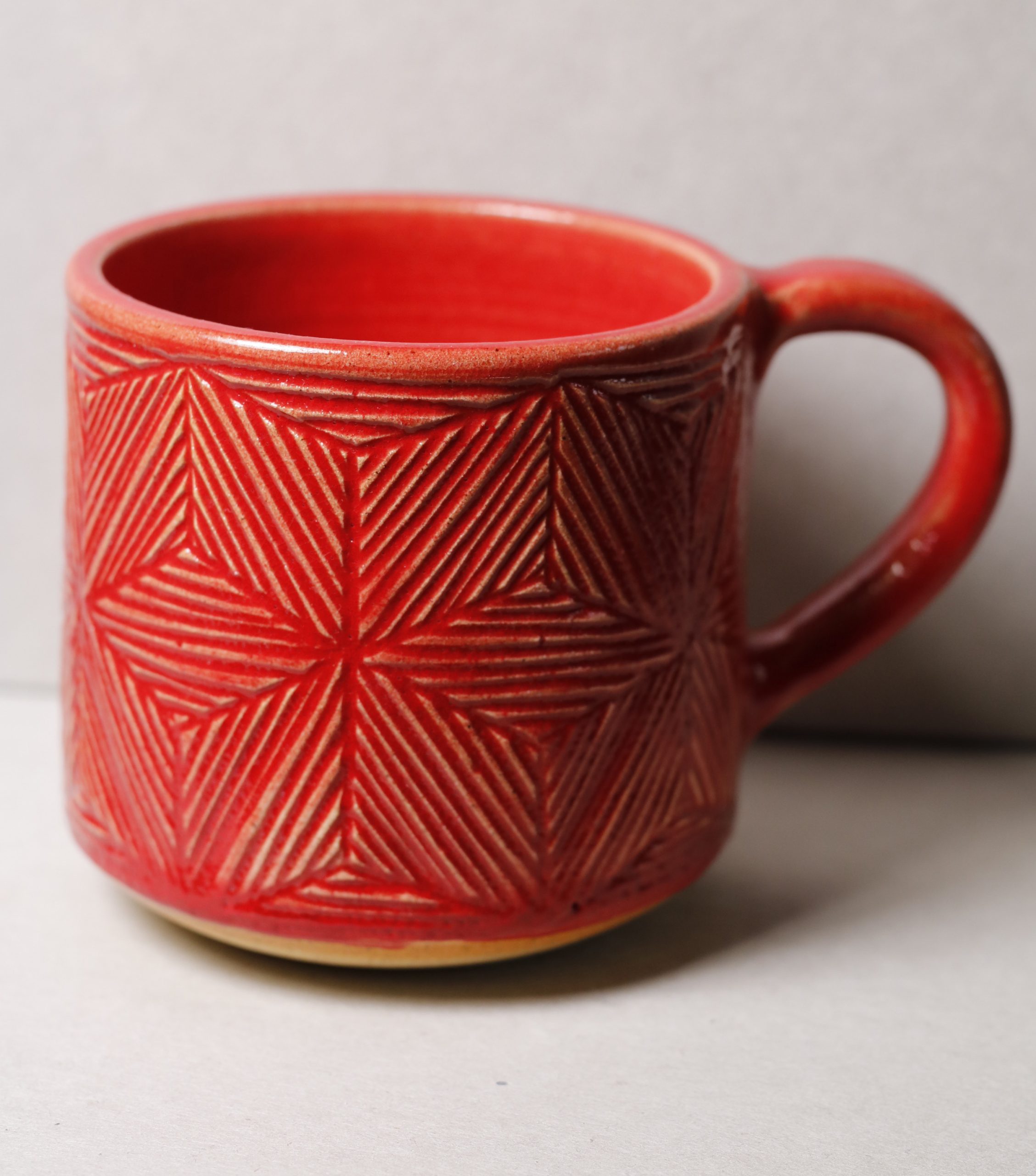 Ručně vyráběný keramický hrnek. Vyřezávaný geometrický vzor po celé ploše. 250ml