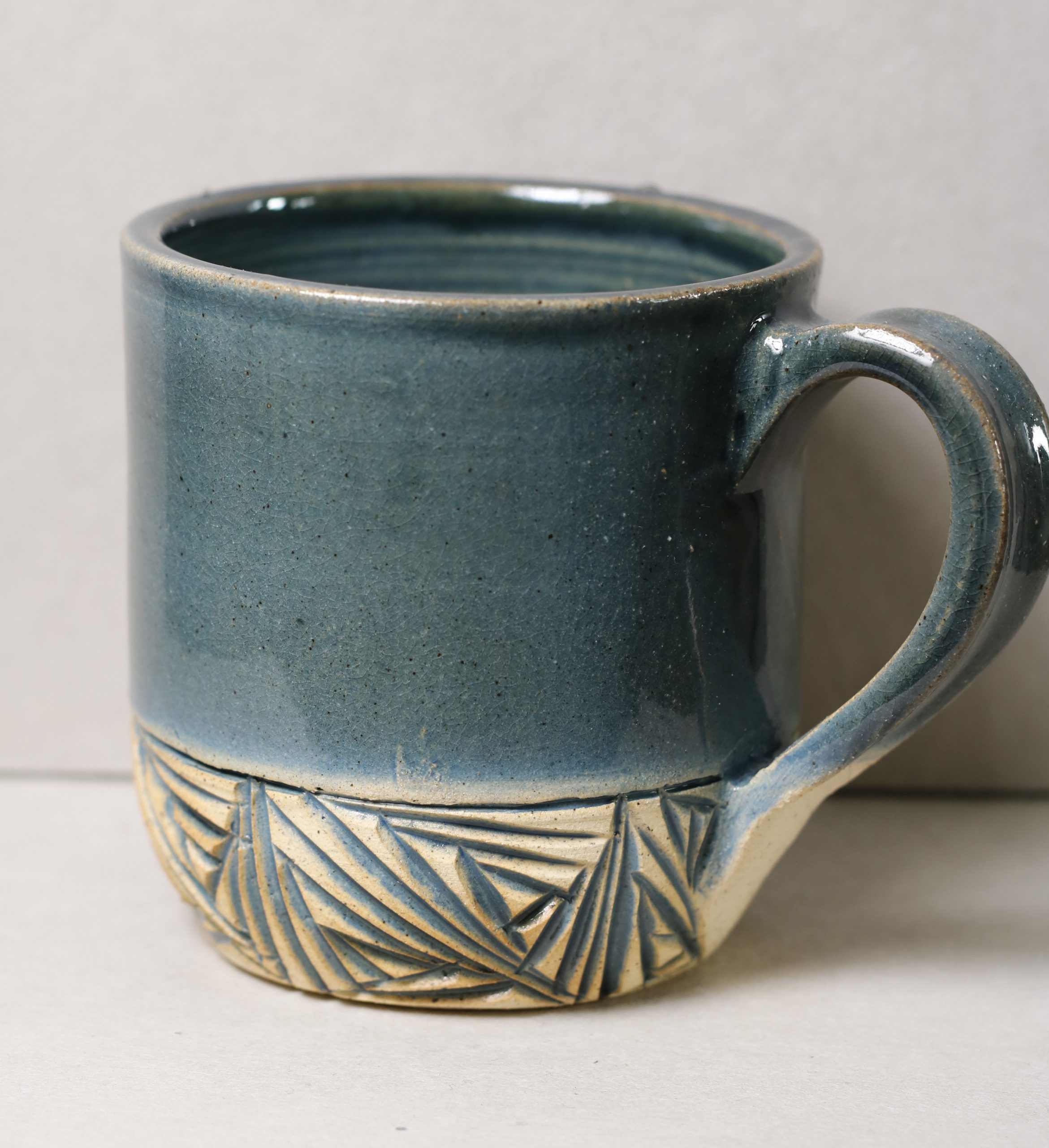 Ručně vyráběný keramický hrnek. Vyřezávaný geometrický vzor ve spodní části. 300ml
