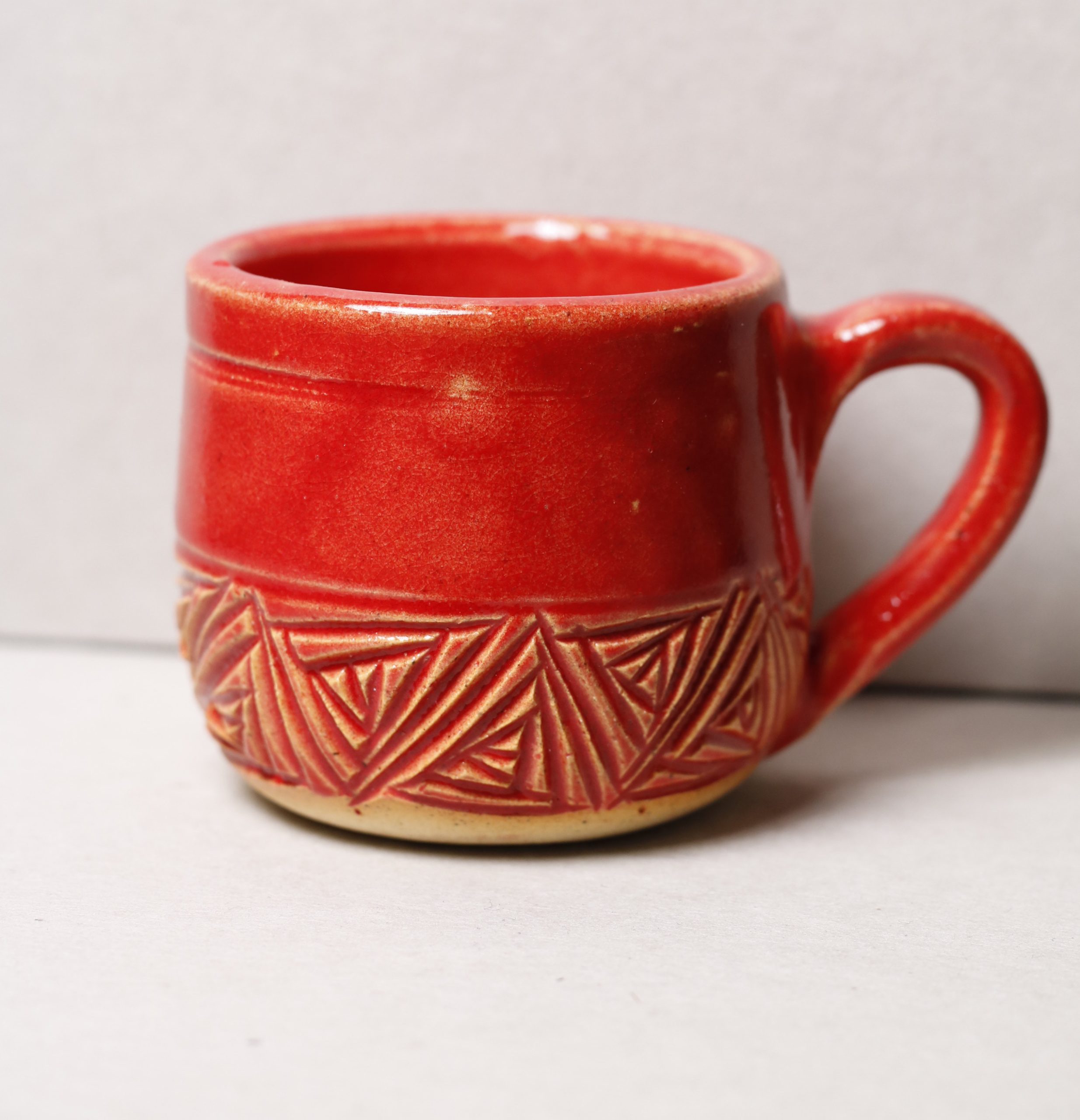 Ručně vyráběný keramický hrnek. Vyřezávaný geometrický vzor v dolní části. 100ml