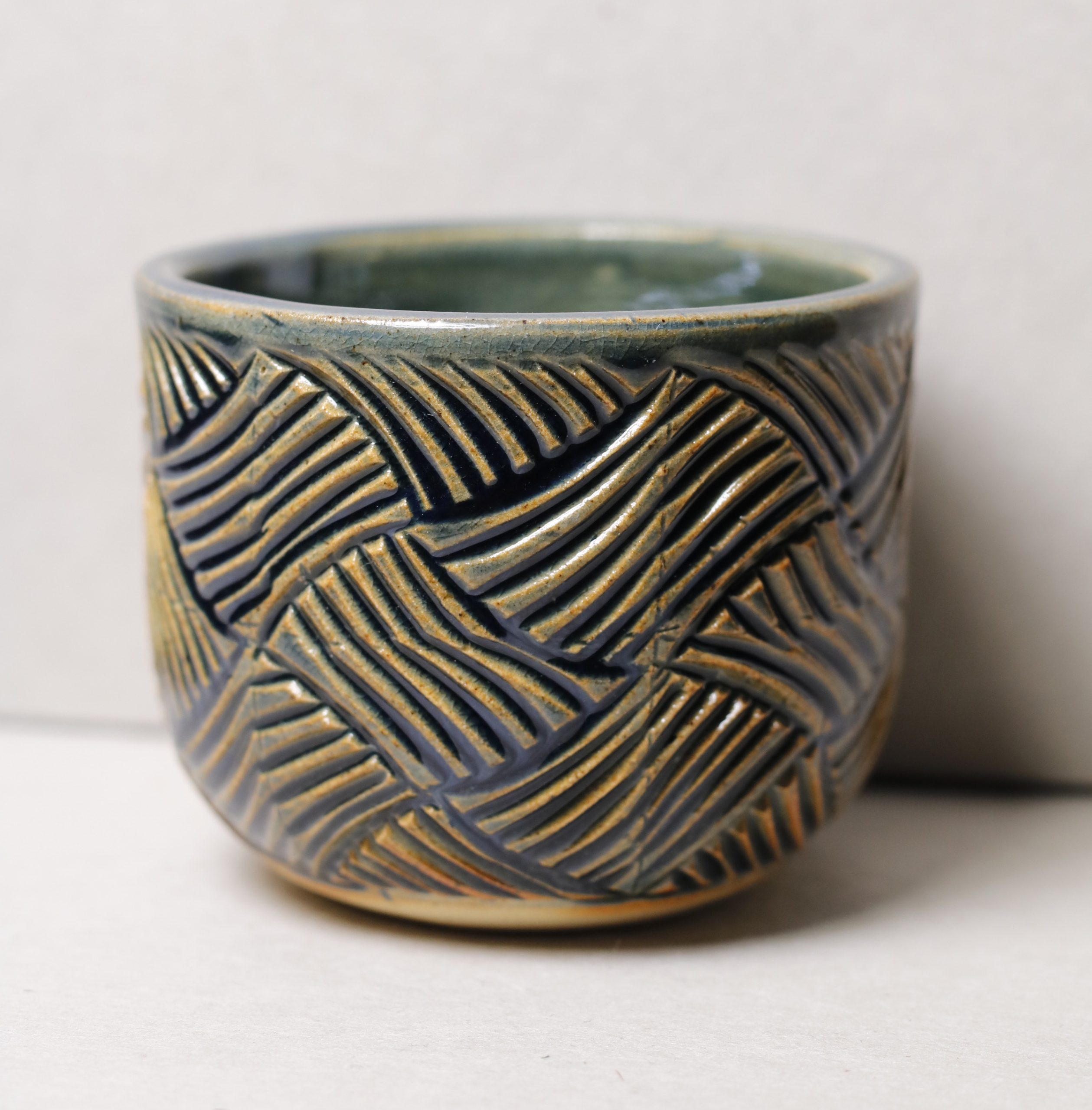 Ručně vyráběný keramický kalíšek. Vyřezávaný vzor. 100ml