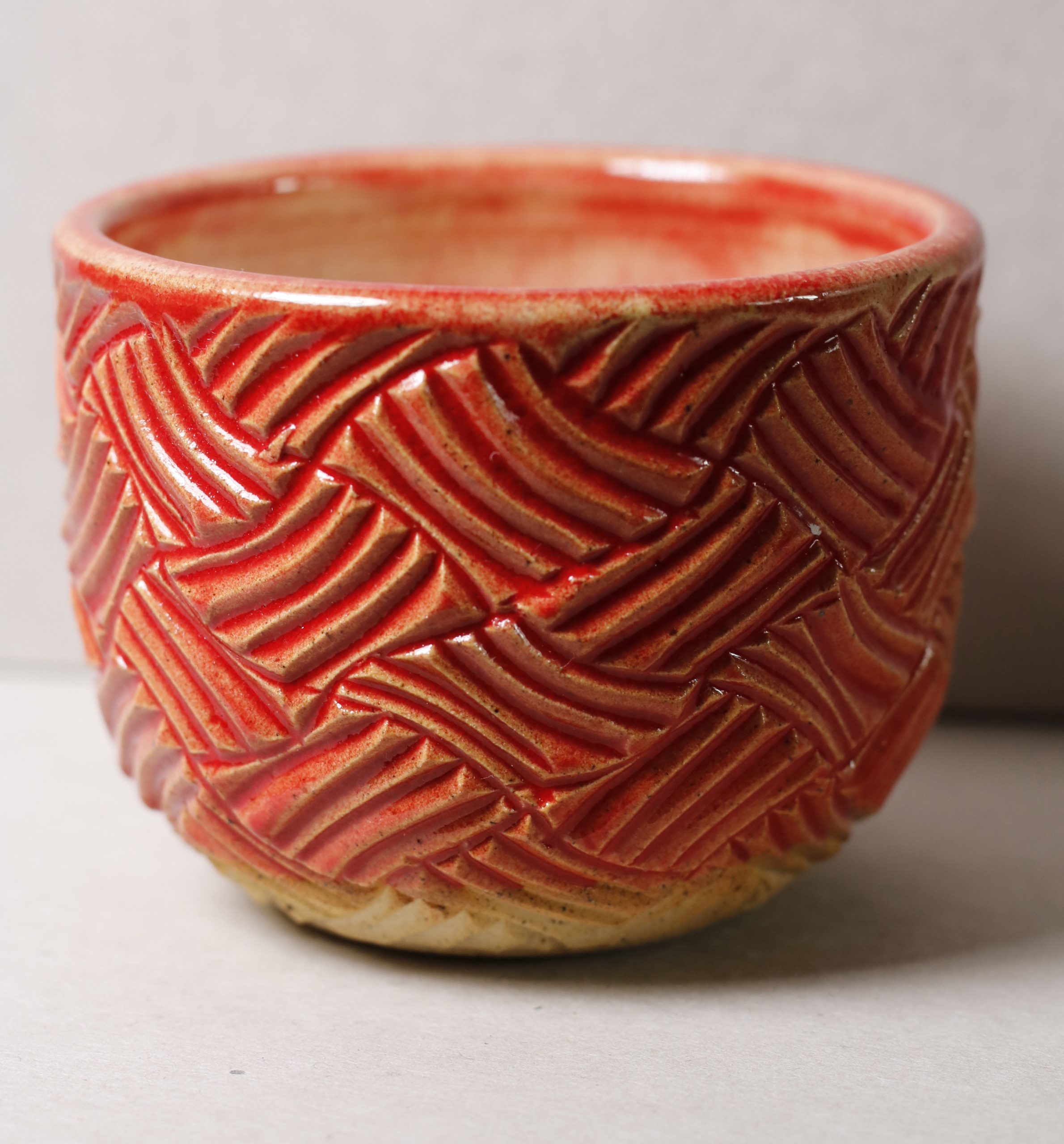 Ručně vyráběný keramický kalíšek. Vyřezávaný geometrický vzor po celé ploše. 200ml