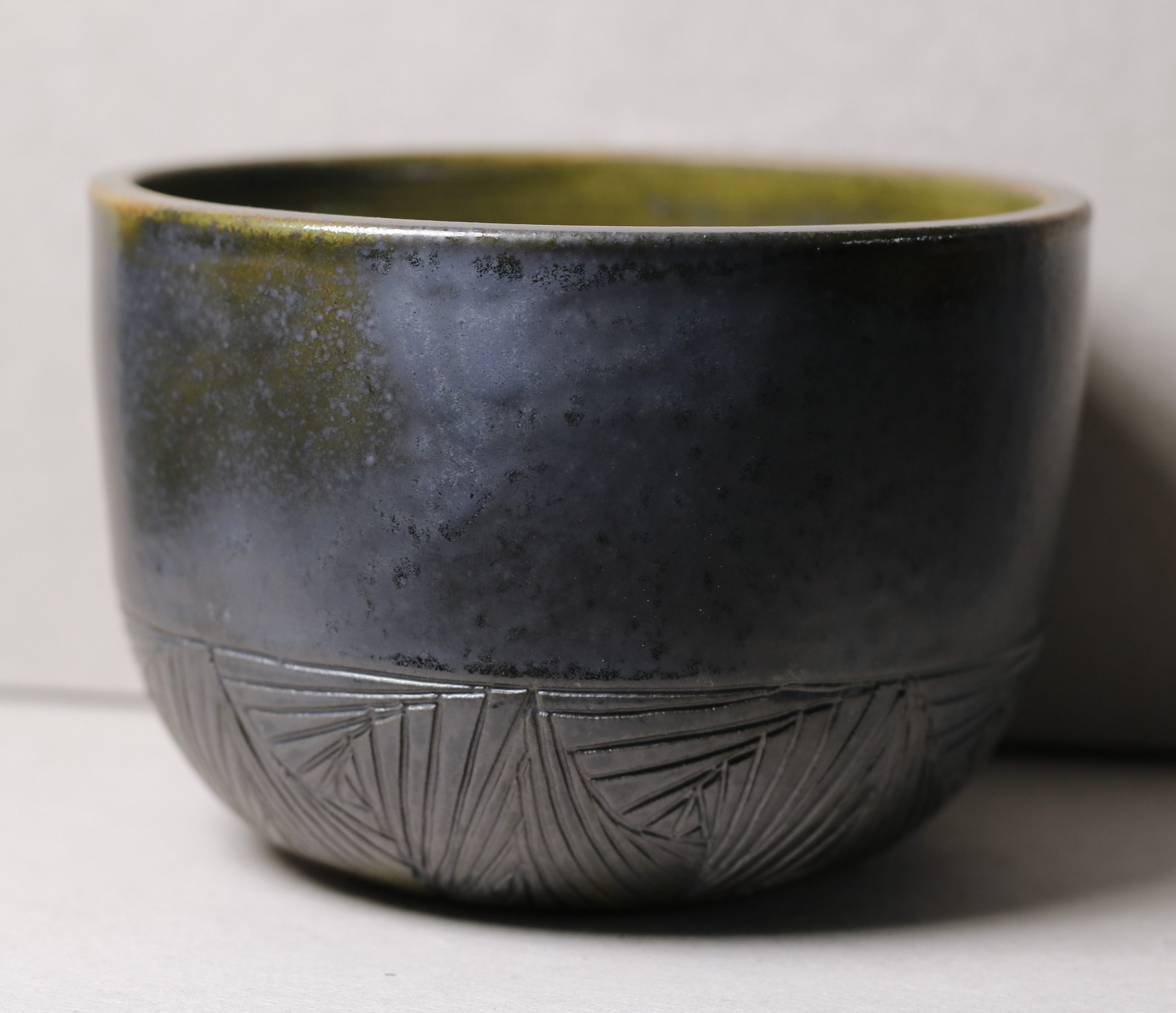 Ručně vyráběná keramická miska. Vyřezávaný geometrický vzor ve spodní části. 550ml